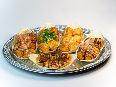 たこ焼き 5種盛り(ソース、しょうゆ、塩、ごま油ネギ塩、ドロソース)(30個) 3,100円