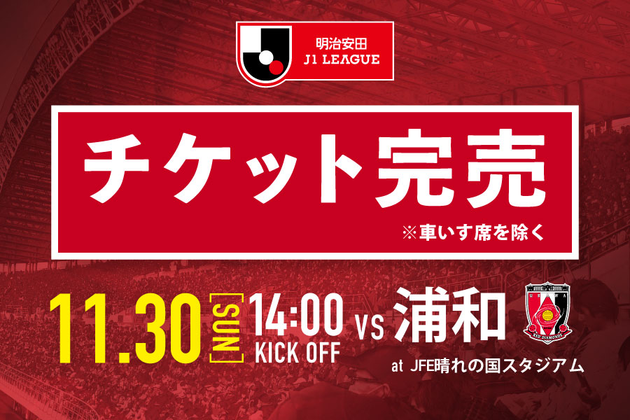JFE晴れの国スタジアムで開催する、浦和レッズ戦におきまして、車いす席を除く全席種のチケットが販売開始後5分で完売いたしましたのでお知らせいたします。