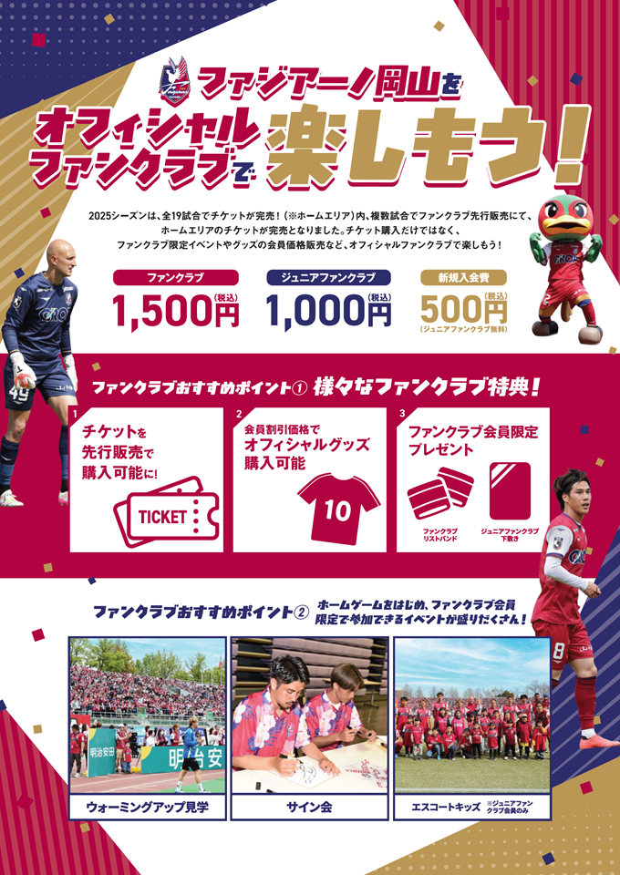 ・ファンクラブ入会後、シーズンパスをご購入された場合、ファンクラブ入会金・年会費は返金いたしません。あらかじめご了承ください。