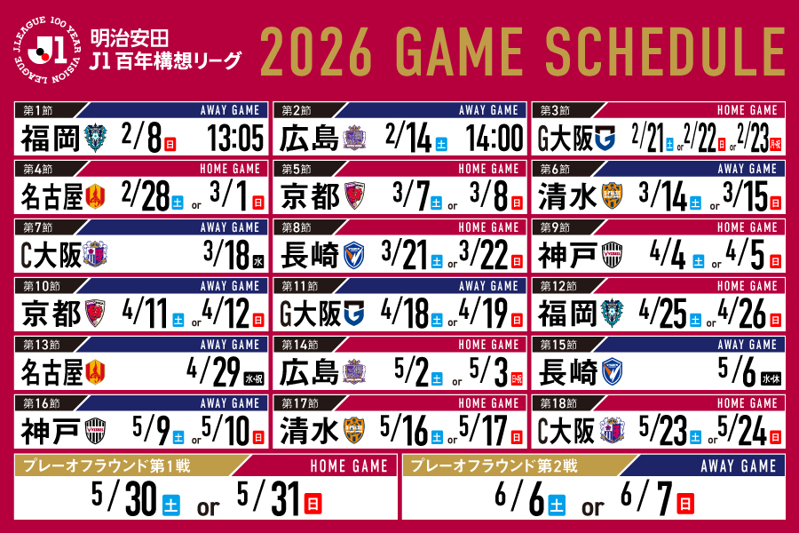 なお、ホーム開幕戦となるガンバ大阪戦について、チケット販売は2月5日(木)ファンクラブ先行販売、2月6日(金)一般販売を予定しております。