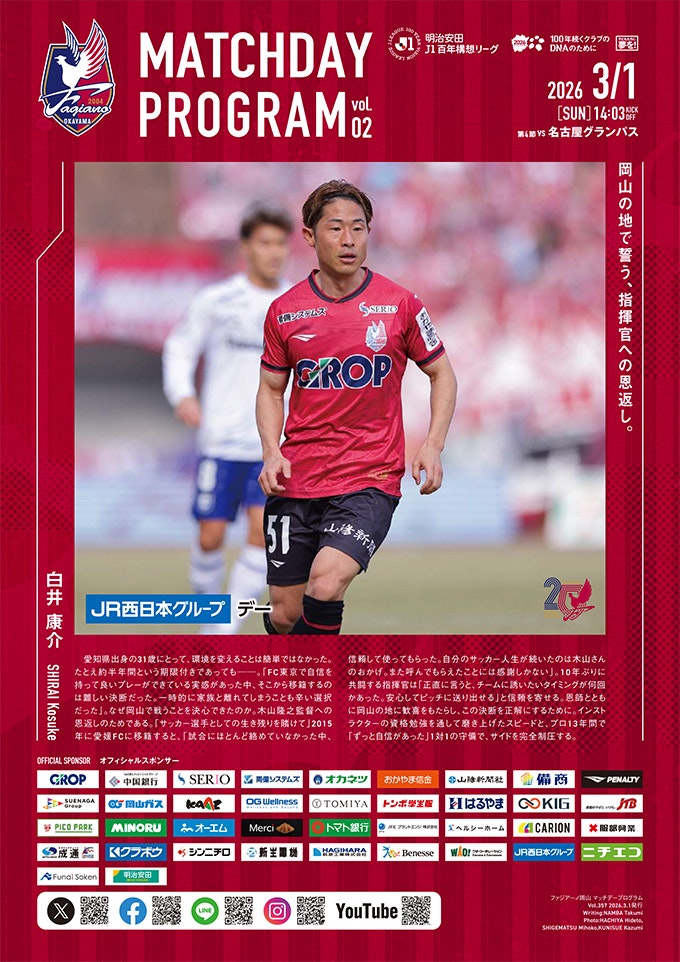 本日、JFE晴れの国スタジアムで開催する名古屋グランパス戦のマッチデープログラムを電子版でお届けいたします。ぜひご覧ください。 3月1日名古屋グランパス戦 マッチデープログラムはこちら ※約3.1MB