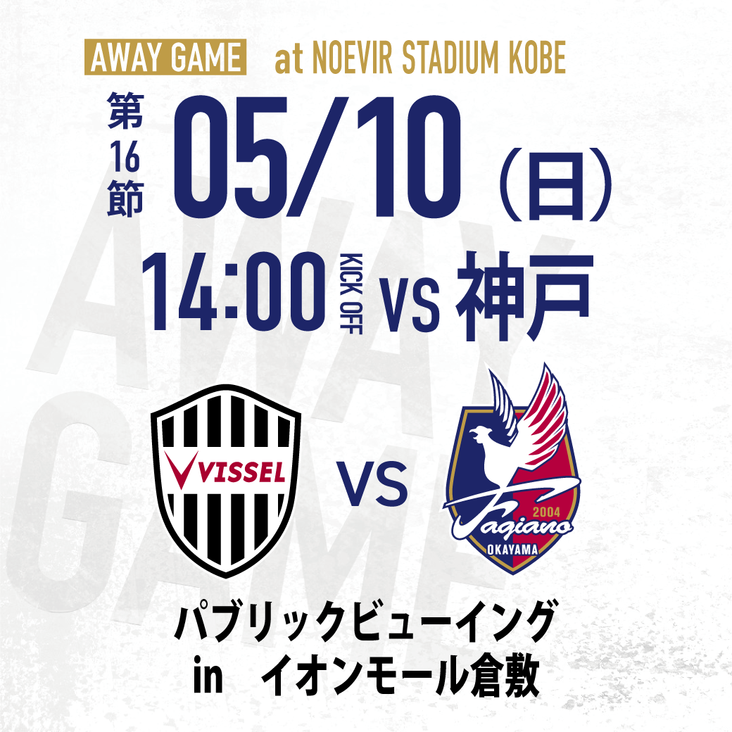5月10日(日)にアウェイで行われる明治安田J1百年構想リーグ 第16節ヴィッセル神戸戦のパブリックビューイングを、イオンモール倉敷にて開催することが決定いたしました!