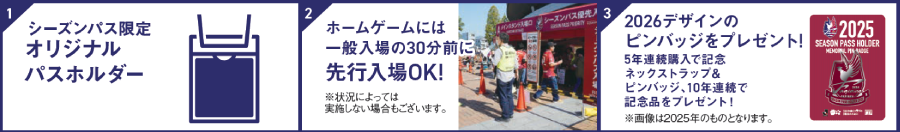 2025シーズン シーズンパス、個人スポンサーを購入されている方「明治安田Jリーグ百年構想リーグ」において、シーズンパスの新規販売は行いません。2025シーズンにシーズンパス、個人スポンサーにご加入いただいている方のみが対象となります。