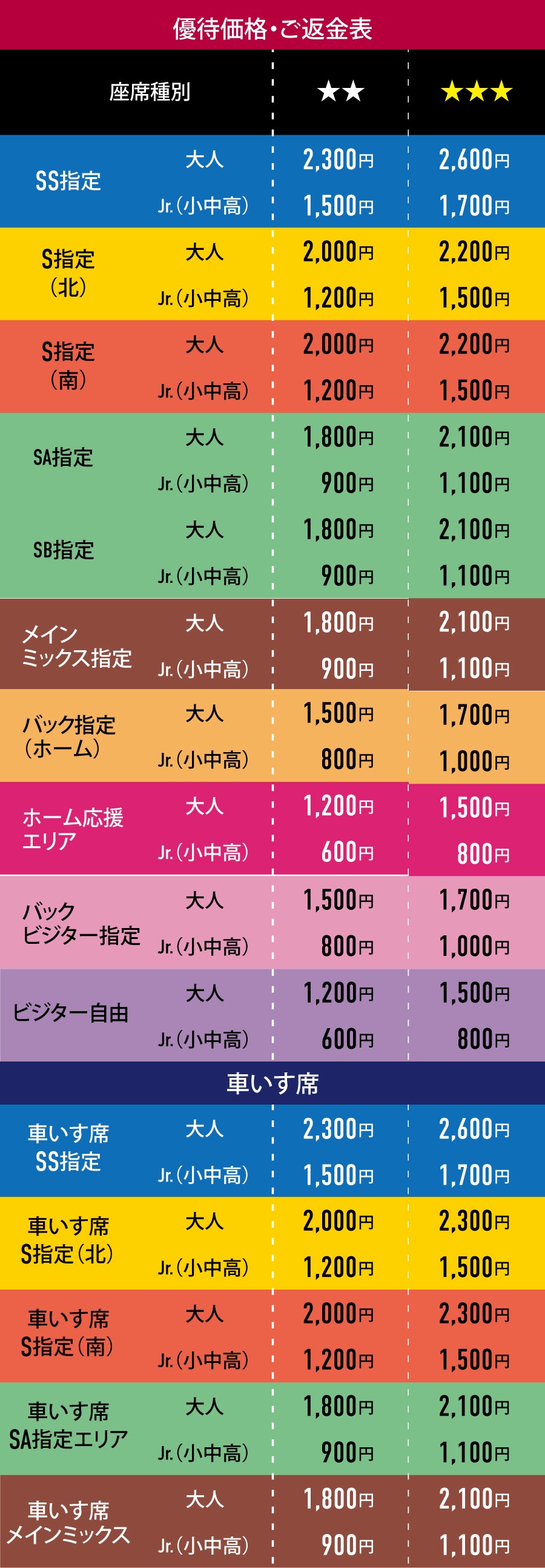 ※Jチケでは一般価格でご購入ください。スタジアム前広場総合案内にて差引金額をご返金いたします。システム利用料、発券手数料などは、返金の対象外となります。
